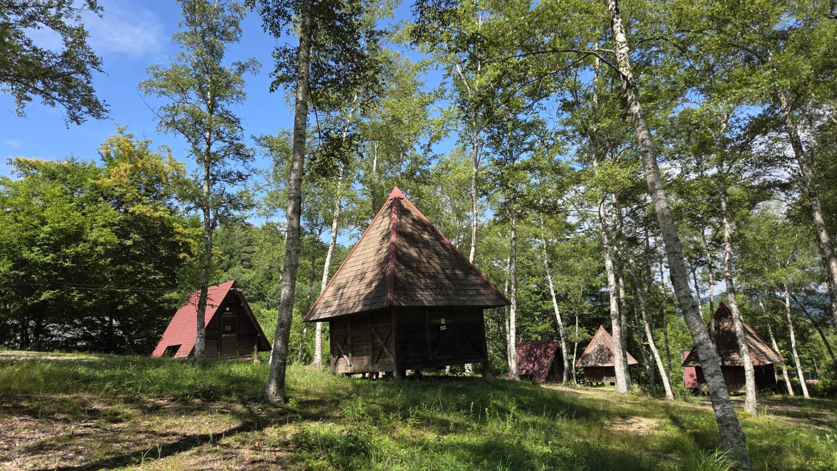 白樺林が気持ちの良いバンガローのサイト。
